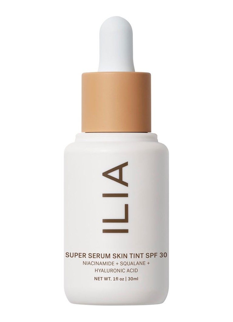 Ilia beauty 's super serum skin tint spf30 natural foundation hydrates the skin while protecting it from uv rays and enhancing the complexion.